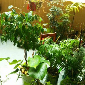 今日は春の嵐☔ 近頃、ベンジャミンの葉がなぜかベタベタ‼ ホコリとベタベタを自然シャワーで流してみました!