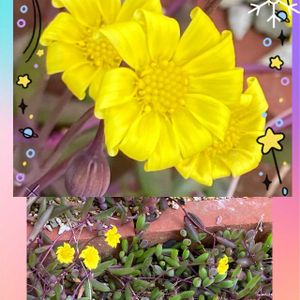 こんばんは♪( ´θ`)ノ 家の中より外が暖かい💦10℃ レンガ🧱の周りに溢れた土で たくましく育っているルビーネックレス 3人仲良く開花のお花🌼🌼🌼 とっても(୨୧ᵕ̤ᴗᵕ̤)カワイィ🎶