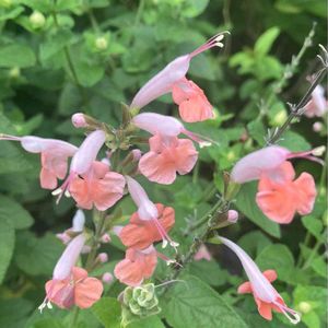 こんにちは! スッキリしないお天気です🌧🌦☁️ 朝のウォーキングで見ました! ピンクのセージ💗 ほんのりしたステキな色です♪〜