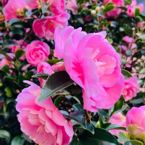 サザンカ💗💗💗 一本の木から三種の花が 咲いています♪〜