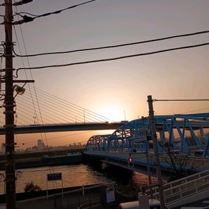 マンションの窓から見える、ハープ橋、夕焼が綺麗🎵中川の水門も、堂々としてます💙