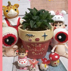 おはようございます🍀 🏷️オケツの日 1枚目は、植え替えた、ちまちま屋さんのミルクゥージとメロカクタスの赤ちゃん💕 ブースカくんが見守ってくれます❣️ 2枚目は、久しぶりにアメジストセージさんと待ち合わせし、ちまちま屋さんへ行って来ました。 ちまちま屋さんのマークは、はなずきんさんの多肉の原点、万年草(マークにもなっている)特にミルクゥージは、お気に入り💕 3枚目は、お預かりしたものと、アメジストセージさんが育ててる苗を3個も頂きました。私も大好きな子たちで、とっても嬉しかったです💕 4枚目、ミルクゥージは、品種登録されているので、増やしたり販売したりは勝手にすると罰せられるから、お預かりしてるだけ😅 先祖がえりしやすいので、綺麗な斑入りの部分を分けリメ鉢へIN。育苗箱の方は、風通し良くしました。 メロカクタスは、我が家の種から、育っている子たち。混雑して、根っこが持ち上がってしまったので、4号平鉢に植え替えました。何と45個育っていました🥰✌️ 大切に育てたいと思います🤗 いつもメンテナンスして下さっているアメジストセージさんへの感謝と、はなずきんさんの回復を願っています‼️ 5枚目は、番外編。 先日、のりたまさんの投稿で知った、崎陽軒の醤油差し「ひょうちゃん」今は、プラスチックになりましたが、70周年記念で、8月まで、オリジナルデザインのひょうちゃんが、再販。しかも色が何色かあり、中には「金色」も🤩🤩🤩(開けるまで分からない😅) お弁当ではなく、焼売に入っているので、もし買われる人は、間違わないように‼️ 今日も宜しくお願いします🌿
