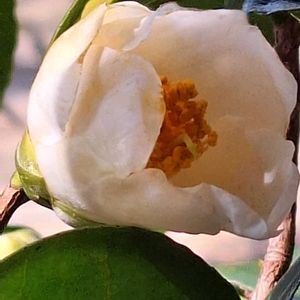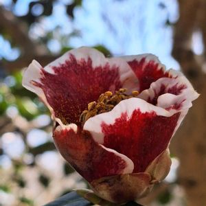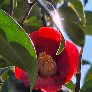 一輪だけ咲いていました 開花時1月~4月 花色は鮮やかな朱紅色 先細りの筒しべは根元まで真っ白で、花弁とのコントラストがすてきՇ˝ན 「婆の木」という変わった名前なので深掘りしました 以下コピペ😛↓ 「岩田さんという女性が発見して、地域社会に貢献、 親しまれて、亡くなられた後まで彼女を思い、お婆さんの木(婆の木)と呼ぶようになった」そうです。
