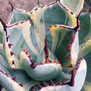 アガベ 吉祥冠錦 またまたアガベ! いやー、ハマりましたね完全に。 今回は葉折れやトゲ折れなく持ち帰りました! アガベ持って帰るときほんと神経使う。笑 葉の色合いとトゲの感じがお気に入りな一株です。
