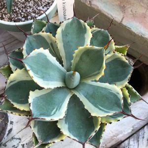トゲトゲへのときめき( ー̀ - ー́ )キリッᵃⁿᵈ Variegataへの蕩めき(*´`) こんばんは(^^) 船舶免許の更新を忘れてて 慌てて中野サンプラザでの講習予約...💦 間に合って良かった( ´ー`)ホッ スーパーさんでなくても、 オレンジ?棘と外斑(覆輪?)が綺麗な W30cmオーバーの吉祥冠錦さんˆˆ Agave potatorum f.variegata'Kissyokan-nishiki' 手に入れ易い普及種ですが、 少し黄色がかった斑とオレンジ棘が とても綺麗なアガベさんです(*´`)