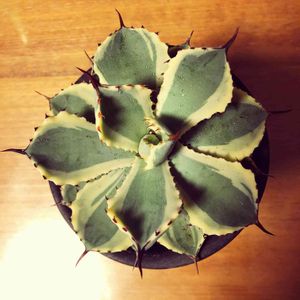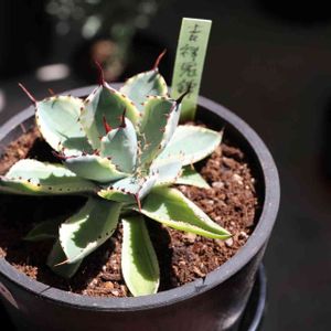ヤフオクでポチった斑入りのアガベ様✨ 吉祥冠だそうです。 これとメリコ錦の違いがまだわからない😂 メリコ錦とクリームスパイクの違いは? まだまだアガベ若葉マークな私です🤣