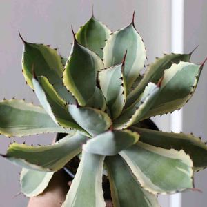 4月の新潟サボテンクラブの展示即売会にてお迎えしたアガベ吉祥冠錦…早速、自作のゴブレット鉢に植え替えました。 イカつい系の品種ですが、斑入りである意味ハードさが和らぎ気品漂うお姿に…アガベ初心者の自分も思わず魅了されました。 信楽作家市では参考品として大勢の来場者様にご覧頂きまして嬉しかったです♪