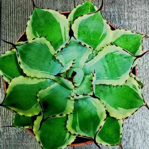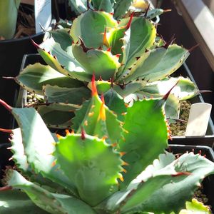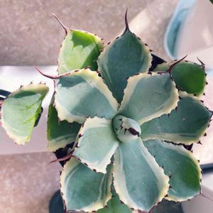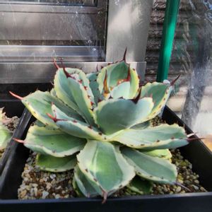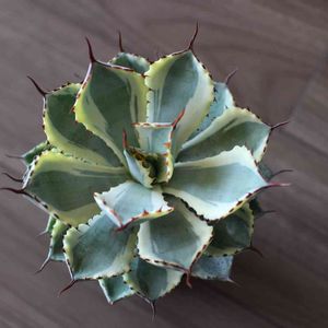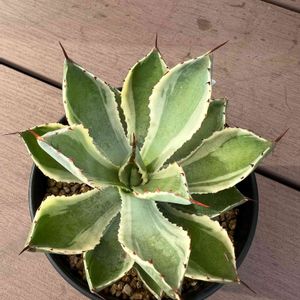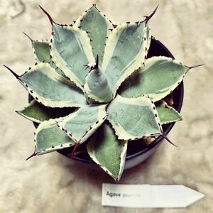 お迎えしました、アガベ 吉祥冠錦さん! 白中斑がお綺麗なようで〜 最近投稿した不明種ネペンテスさんと一緒に買いました!