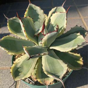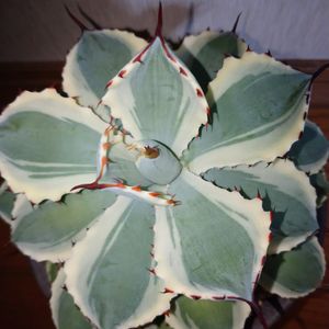 アガベ属 吉祥冠錦 アガベ属 クリームスパイク 🥰 旦那ちゃんちで育ったアガベです🤩 赤い棘とバリエガータが とっても美しい🥰🥰 引き続き、美人に育てま~す💪🏻✨ コツ教えて🙇♀️ 🏷毎月7日はアガベの日