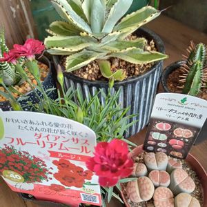 こんにちは×②です😊 先週、既製品の温室を1台(左)購入したのですが、これ失敗でした😥 右は、天窓が開くので温室内の温度の上昇は防げますが、左はヤバイ😱💧 アガベさん達煮えそうです💦 そして、ピンクアイスさんはお花を切り、ドライにしまぁーす😊💕 でぇー👉👈、ちょっと多肉さんをと見に行き、この子を見つけてしまい。。。 今月はもう買わぬ!と決めて居たのに、買ってしまいました😓 反省しております💦 が、しかーし、更に輪を掛け、今月末、多肉ランドにてイベントありまぁーす! アガベさん沢山持ってきてくれますよーと店員さんに声をかけられ😂😂😂 ゆ、誘惑が🤣 だめだこれは💦ですね💦