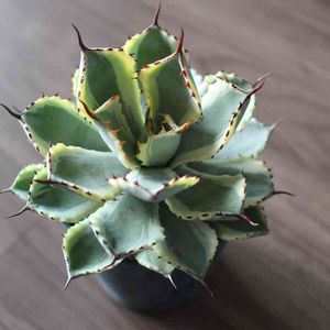 アガベ・吉祥冠錦🎶 ウチのアガベでかなり優秀に成長中⤴️ (あくまで私個人の感想) 棘同士も初めのうちは間隔が開いてたけど、 だいぶビッシリ詰まってきた。