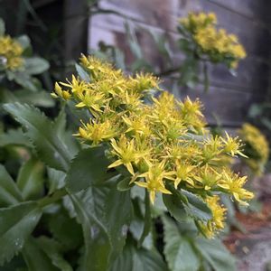 キリンソウ(麒麟草) ベンケイソウ科 キリンソウ属 高さは20~50cmになります。 多肉質の葉は先のほうが広いへら形で、茎に多数つきます。 5月に茎の先端に花茎を放射状に広げ、星形で径1cm弱の黄色い花を多数咲かせます。 冬は地上部が枯れ、根元に新芽をのぞかせた状態で冬を越します。