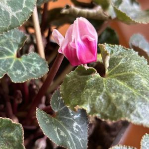 こんにちは😃〜 寒い🥶ですね〜 玄関に置いていたシクラメンさんに お花が咲いていました♪ 何気なく葉っぱをめくってみたら、 咲いていましたよ〜 なんか嬉しい☺️です❣️ 電話が来て明日明後日は、 呼吸器科の検査です。 行く前からイヤです。。。😭