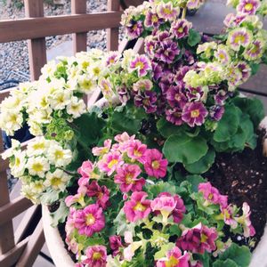 💕新入りさん💕 【プリムラ オプコニカ プリカント3色】 おはようございます。 寒い朝になりました。長い名前のプリムラです。 レッド、パープル、ライムグリーン