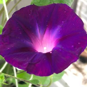 マルバアサガオの絞り咲き。 似てはいても、二つと同じ模様は有りません。どうしてこんな模様ができるんだろう🤔⁉️ 風情が有って、なかなか良い花です。 品種名が判明しました。 ホンマ農園さんが2016年に商標登録した「江戸風情」と言う品種のようです。 この品種名から誤解されそうですが、江戸時代に大流行した古典園芸植物の流れを汲むアサガオ(Ipomoea nil)とは全くの別種でマルバアサガオ(Ipomoea purpuea)の品種です。