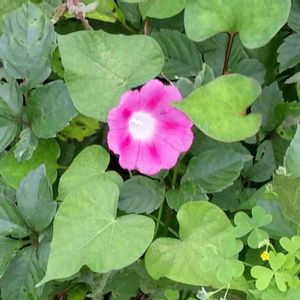この時期に朝顔が! それも、驚きでしたが、 葉っぱがかわいい🎵 マルバアサガオ そのままの 名前みたいです😅 ヤクシソウも覗いています😲