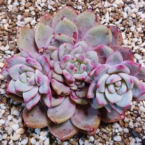 銀武源、葉挿しの方はてんで動きなしなんだが、親株の方がえらいことになってた 子株が3箇所から出てんのよ これまでよくて一人っ子ばっかりだったのが、いきなり増え過ぎではなかろうか これはまた大所帯になるぞ 一方霜の朝の親株はだいぶ干からびそうでやばい感じだったんで、ちょっと日照改善にお引越しさせましたよと