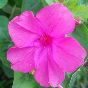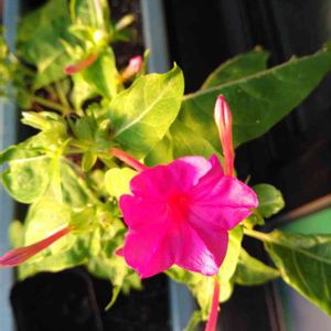 オシロイバナ 午後4時位から咲く花。 別名 夕化粧 英名 four o'clook flower 花後 1個の黒い実が熟します。 香りで昆虫を引き寄せます。 南アフリカ原産で江戸時代に渡来しました。