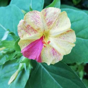 オシロイバナ 昔よく空き地に咲いていたオシロイバナ ピンクや黄色はよくみたけど絞りの入るオシロイバナは見たことなかったな…。 夕方から咲きだして明け方まで咲いてくれます