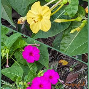 オシロイバナ🩷💛💚 近所の空き地に毎年咲いてるお花🌿 ピンクと黄色が混じって可愛いけど夕方しか見られません🥰