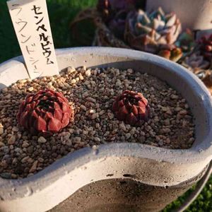 センペルさん。 ラウンドシーン。 子株離してチマチマ植えました。