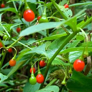 山の中の散策路 覗いたら🥀ハダカホウズキの赤い実みつけました✨