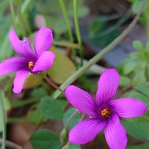 こんにちは😊✋ 今日の昼下がり ウォーキング🚶♀️で 出会ったお花🌼 イモカタバミ🩷💜 色鮮やかな 濃い赤紫の小さな花が 咲いていました🤗 これからたくさん 咲くんでしょうね😊✋ 🩷💜🩷💜🩷
