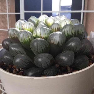 黒太葉オブツーサさん♪( ´▽`) 葉挿しの子が育ってきました。 もうこの鉢じゃ狭いなぁ( ;∀;) 3株バラして植え替えようか迷いますね☺️