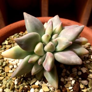 朧月の葉挿しと、紫麗殿の葉挿し。 朧月は本当に強いですね。 葉挿しから綴化でしょうか?ロゼットではない可愛い葉が出てきました。