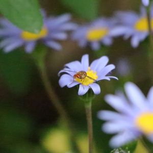 連投すみません💦 ブルーデイジー💙で お食事中~ 🐝⋆゜ 雨が近いようです☔ 梅雨に入るのかな~ 朝から花を切らなくちゃね。