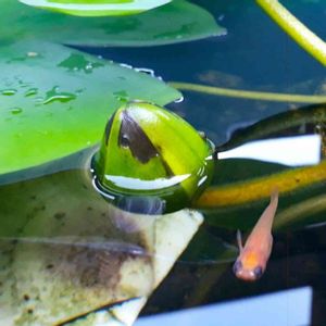 メダカ水槽のスイレン🌼つぼみが大きくなってきた😊