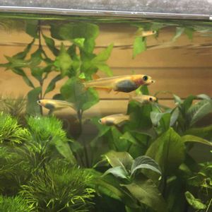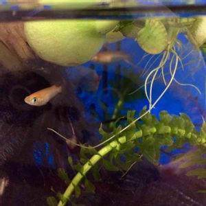 めっちゃわかりにくいけど卵持ってます。メダカ4匹中1匹だけメス。だから毎日バトル。この子は若くてシュッとした子がいいみたいです。