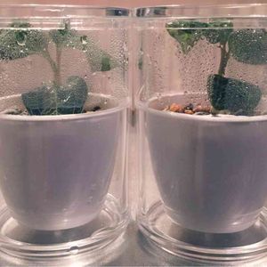 無印のアクリルポット入りマコデス。密閉じゃないので少し葉水してやりました。 右のは天井について少し曲がってる…。新しい瓶を用意するべきか…。