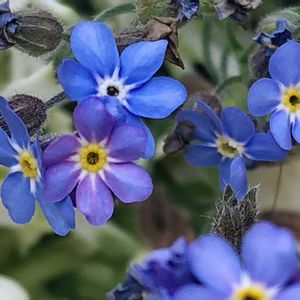 こんにちは♪(๑ᴖ◡ᴖ๑)♪♡💐 昨日お迎えした、ミヤマホタルカズラさんですo(^▽^)o🩵🩵🌿 🏷️ 水曜日は水色 🏷️春爛漫の青い花2025 🏷️ 青い小さな花を写そう!2025 ◎ ミヤマホタルカズラ、リンドラ‘スター’ 可愛いスター咲き♪ ヨーロッパ原産のムラサキ科の耐寒性常緑低木。-15℃程度の耐寒力があり、東北以南の暖地であれば戸外で常緑で越冬します。 地域にもよりますが、毎年4〜6月にかけて小さな白とブルーの覆輪咲きの星型の花を開花します。 這うように横に伸びて成長します。開花草丈は15cm高、株幅は1m程度に成長します。 ◉【育て方】 寒さには強いですが夏の暑さをやや嫌います。夏が冷涼な地域以外では、鉢物で管理して、高温多湿期は半日蔭の風通しの良い場所で育ててあげて下さい。 用土の多湿を嫌いますので、やや渇き気味に水管理して下さい。夏が冷涼な地域では庭植えも出来ます。日当たりの良い水はけの良い場所に適しています。 肥料はそんなに欲しがる方ではありません。生育期の春と秋に控え目に与えて下さい。 とってもとっても可愛いお花さん久しぶりにお迎えしました♪(๑ᴖ◡ᴖ๑)♪