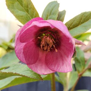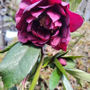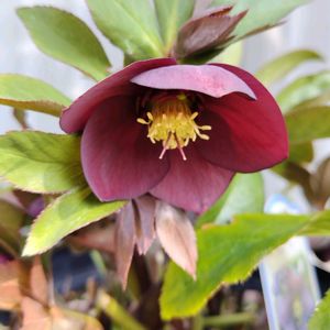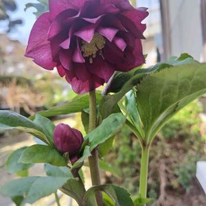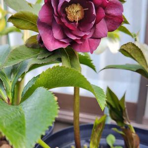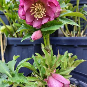 杉山交配クリスマスローズのチビッ子17つ子苗のダブルピンク💕こちらも今年は花が複数咲きそうです😃✌️ タグとはかなり違うお花になったわ🤭 (ヾ(´・ω・`)