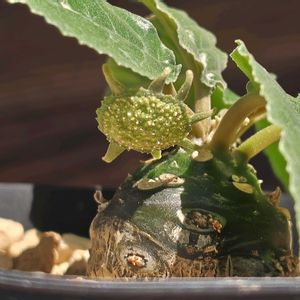 ドルステニア フォエチダ 去年の初冬に購入してすぐに葉を落とし、春に新芽が出てから植え替えしないとなーと思いながら室内管理で放置してしまい、あまり調子は上がらず花を付けません。 今日ようやく植え替えしました。