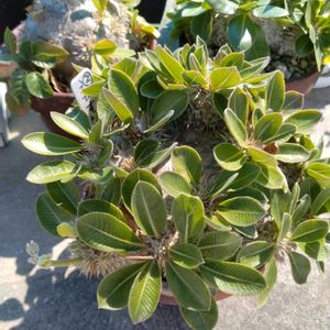 ドルステニア フォエチダ(モンスター) こぼれ種で増えてます。自家受粉の醍醐味ですね。 1枚目が親株。カエルに激突され、下葉がもげたけれど元気。 2,3枚目はこぼれ種グループ。オベサの隣のは、もう少し大きくなってから移植します。