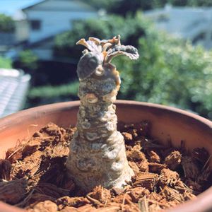 フェチルダ、冬眠に向けて落葉を始めました。 育成メモ: ドルステニア フォエチダ Dorstenia foetida 冬 : 室内 夏型 冬は落葉 頑強種 自家受粉でタネを四方によく飛ばす
