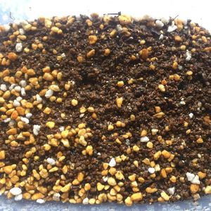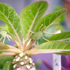 フォエチダの種飛ばしが始まりました✨ 種をキャッチするために台所の流しのネットで鉢ごとすっぽり包みました。 ネットの中に弾いた種がたくさん落ちてます♪( ´▽`)やった🎵