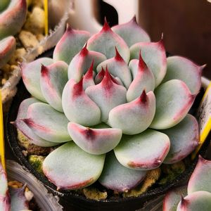 9時で6℃ 4cmポットのかわい子ちゃん💓 ずーっと可愛い 3枚目は昨年の冬 外で育てて色づかんかった子 LED下でやっと可愛くなってきた〜💕 外の寒暖差で色付くと思いきや いっちょん色づかんかった