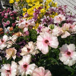 玄関脇から… 花盛りになったラナンキュラスラックスたち🤗✨🩷🧡💜💗✨ ① アリアドネ ② ピュタロス ③ ティーバ ④ リキュア リキュア以外はひと回り大きくなって、今年は嬉しさいっぱいです🎶