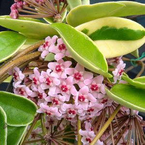 今日のお花🔸ホヤ・カルノーサ(サクララン)🔸 昨年はたくさん咲きました✨🩷✨🤗 ①② 昨年9月撮影 ③ 昨年5月撮影 ④ 今朝撮影 ツルがどんどん延びて、こんなになってしまいました(意外と丈夫です)🌿 剪定を考え無くては✂️💦
