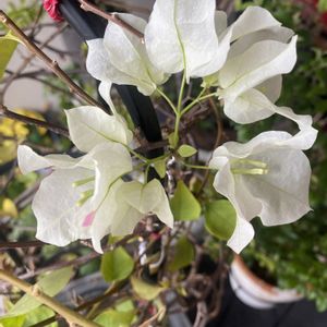 ブーゲンビリア室内越冬中 環境変化で葉がどんどん落ちますが、花はたくさん咲いています。もうちょっとの間、頑張ってね、、