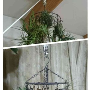 エアプランツの水やりのたびに、椅子に乗って下ろしていたのを、滑車で楽チン❗に。これで、小まめにいじれるかな?