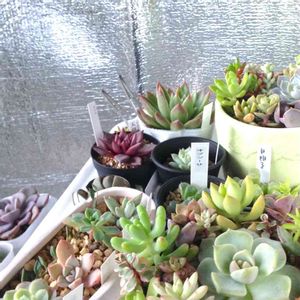 ピカピカ反射大作戦☀️ アルミのシートを多肉棚の横と後ろに配置してみたよ😁 窓に向かってビョーンとしてた2段目、3段目のゼダムちゃんも、少しまっすぐになったような…😅