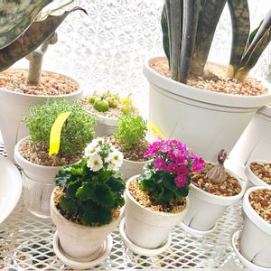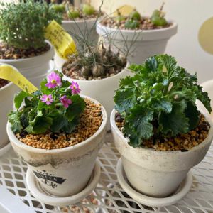 2025/03/22、プリムラ「手乗りメラコ」。 GreenSnap 三ツ星品質モニターです 2週間程経ちます。 花が終わった花茎をカットしました。 白花の株は繁っているのですが、桃花の方が元気なさげです。 白花株は株が大きく、花は少なかったのですが 桃花株は株が小さく、花が多かったため、疲れているのかもしれません。 プリムラ「手乗りメラコ」 『手のひらに乗ってしまうくらいコンパクトに育種した 福島県矢祭園芸のオリジナル品種です。 花も小輪にいたしました。それでいて、わい花剤は使っていません。 コンパクトな姿のまま長く楽しめるサクラソウです。』