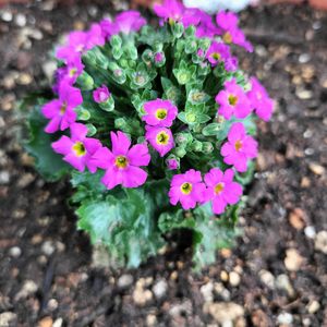 2025/03/12、プリムラ「手乗りメラコ」。 GreenSnap 三ツ星品質モニターです 植え替えました。 満開で届いたので、斑らに数輪枯れてきていますが 花茎ごと摘むのは勿体無いので枯れた部分だけカットしています。 周りの鉢は3号なので大分小さい株です。