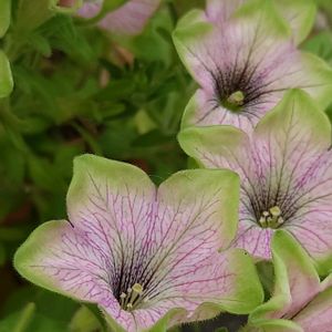 おはようございます✋ ペチュニア😊 初めて見る色合いなので 調べてみたら🔍️ 「バイプレイヤー」と言う 品種でした🤗 ピンクの花びらと 縁どりが緑 可愛いです💠🩷💚 8月2日 撮影しました📱✨️