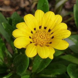 おはようございます✋ ガザニア🧡 黄色の花びらが 鮮やかで 中央の小さな茶色の 模様も可愛いです🤎 9月14日🚶♀️ 撮影しました📱✨️