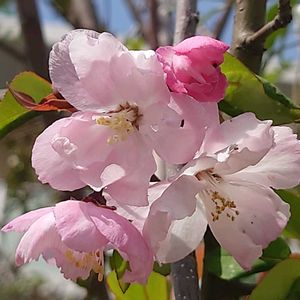 こんにちは😊✋ アニソドンテア🩷 淡いピンク色で 3センチ位の お花です💠 たくさん 咲いていたので 木がほんのりと ピンク色を していました😊🩷 青空と似合いますね😀 ウォーキングの途中で 撮影しました🌿 4月27日🤗📱✨